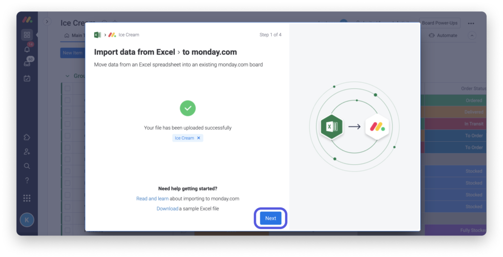 In wenigen einfachen Schritten können Sie auf Monday.com Ihre Excel-Daten in Tabellen umwandeln. Folgen Sie unserer Schritt-für-Schritt-Anleitung oder sehen Sie sich das Video an, um mehr zu erfahren :