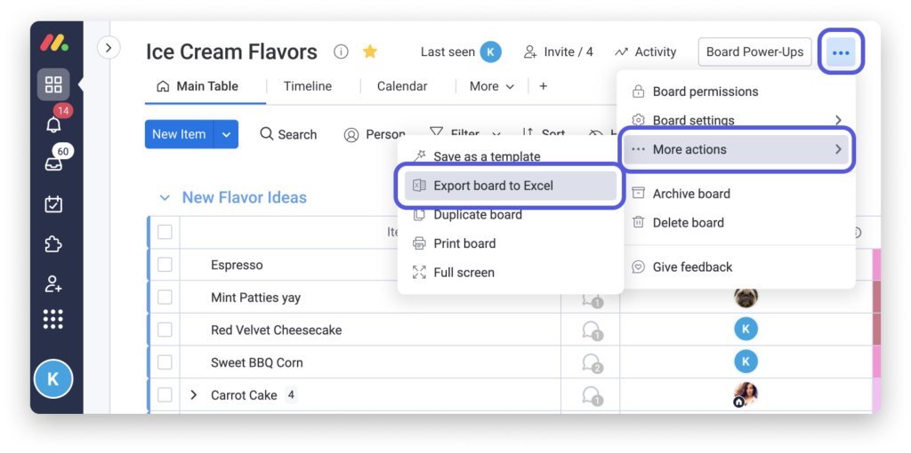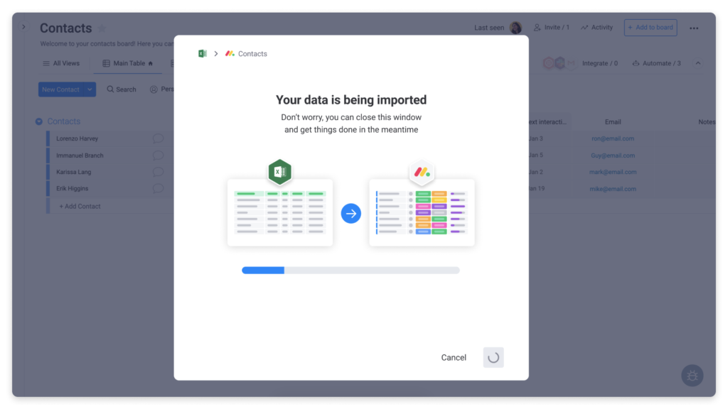 Wenn Sie für einige Ihrer Daten und Listen noch Excel verwenden, machen Sie sich keine Sorgen, wir verstehen das. Monday.com ist hier, um Ihnen bei einem reibungslosen Übergang zu helfen. Sie können Ihre Daten von Excel nach Monday.com importieren oder Ihre Daten von Monday.com nach Excel exportieren, wenn Sie noch nicht bereit sind, alles aufzugeben.