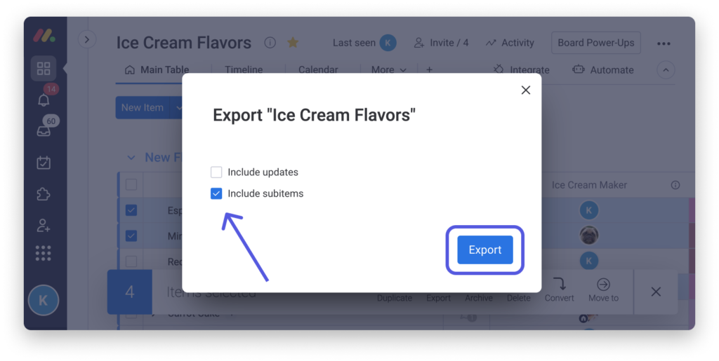 Hinweis: Wenn Sie Unterpunkte in Ihrer Tabelle werden nur die Aktualisierungen des Hauptelements nach Excel exportiert.