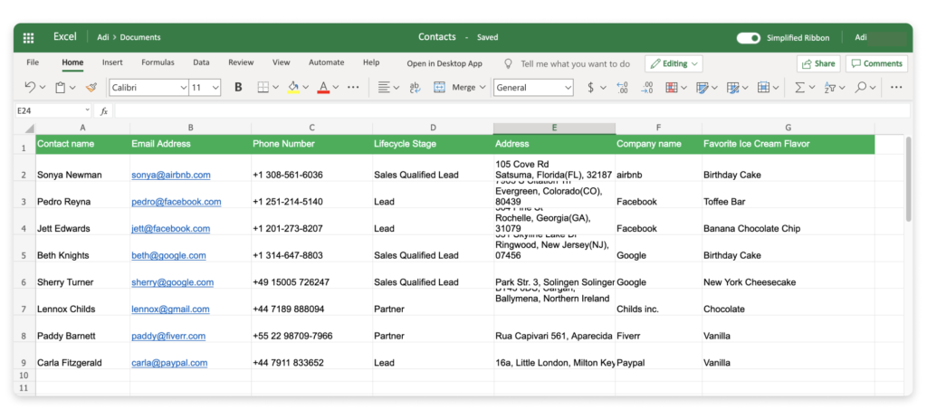 So sieht Ihre Tabelle aus, wenn sie in ein Excel-Arbeitsblatt exportiert wird :